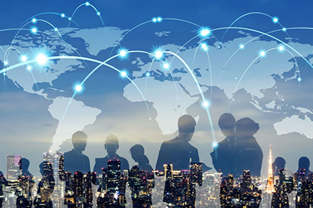 connection of different parts of the world resulting in the expansion of international cultural, economic, and political activities.